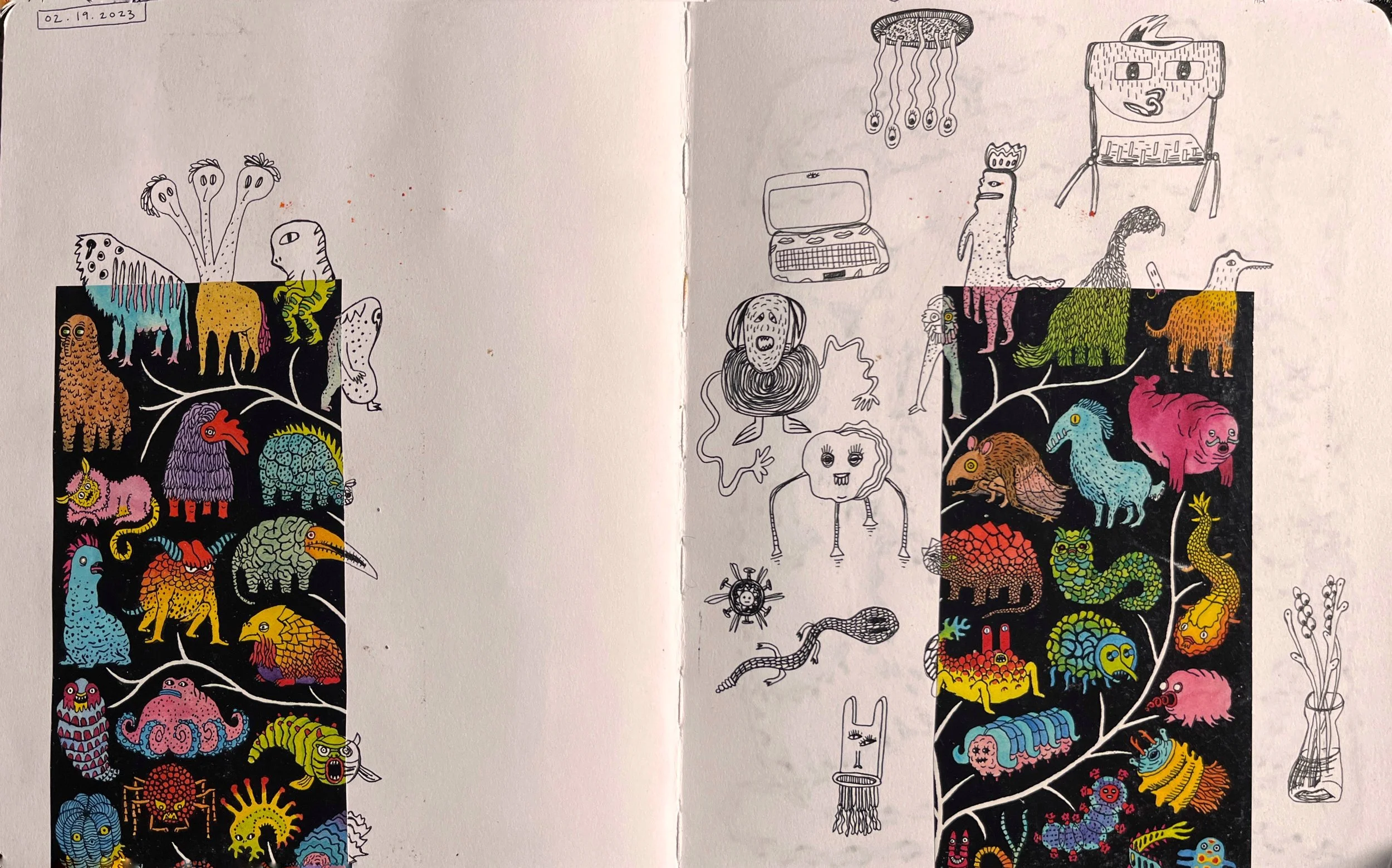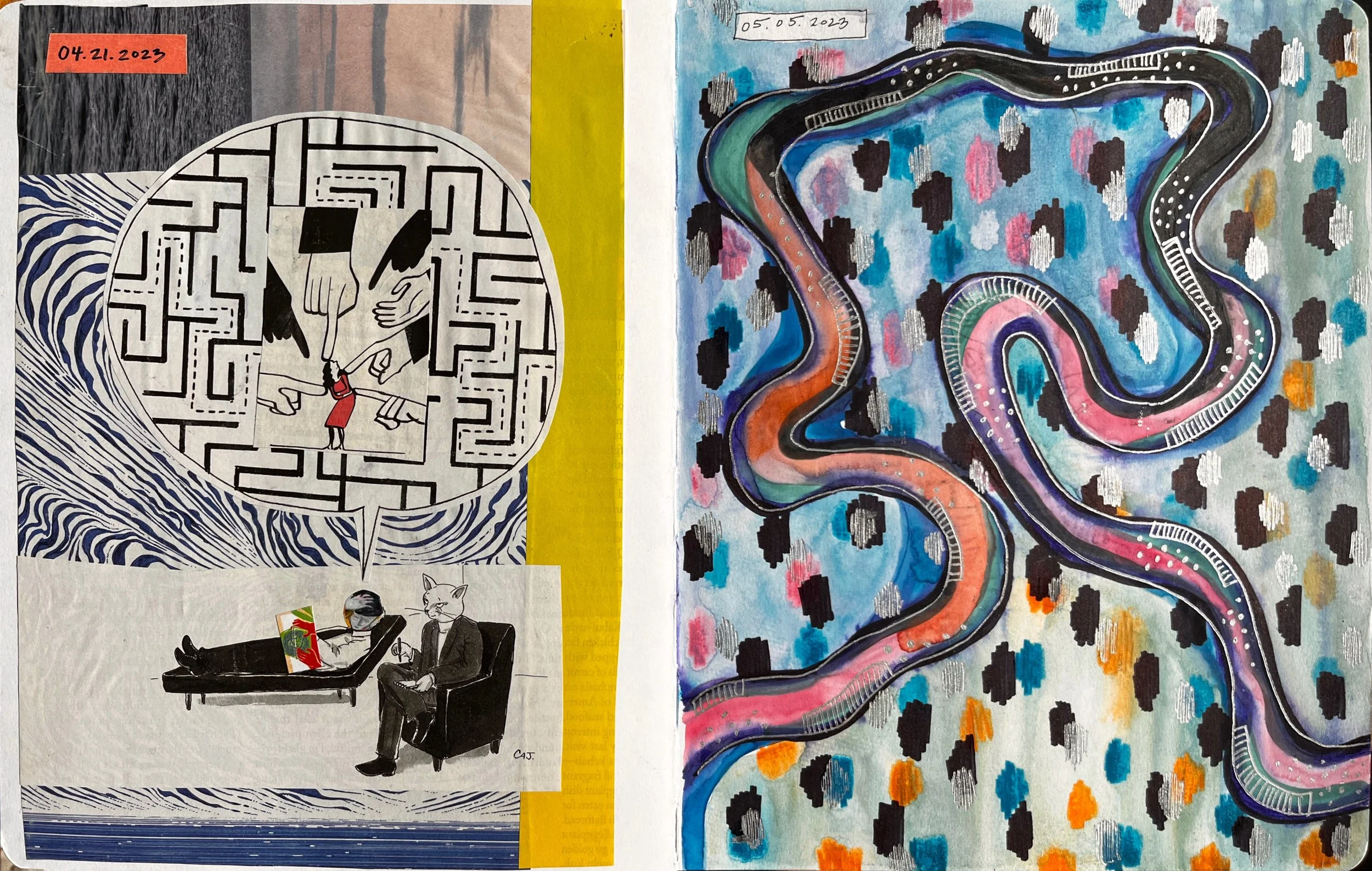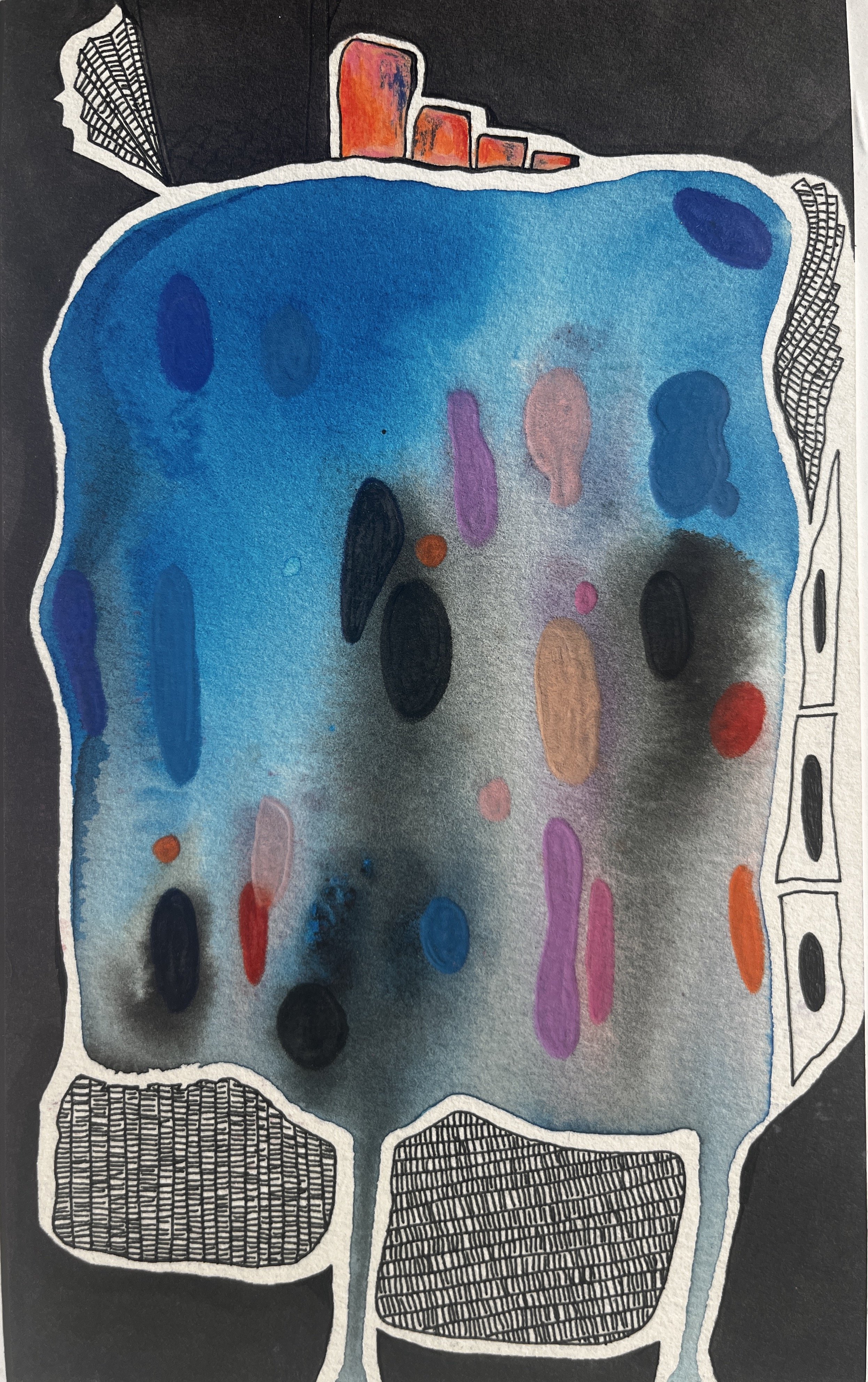 This series of embroidery on black canvases combines leftover scraps of an Indian silk saree with traditional embroidery thread. The combination is meant to give ode to the cultural context from which I emerge and highlight the beauty of traditional textiles.